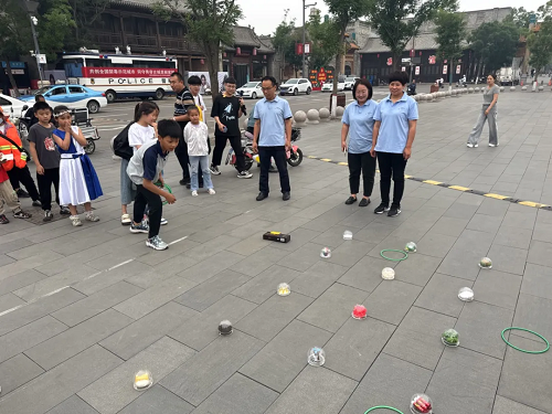 活動現(xiàn)場,在一個特殊的攤位上,由近到遠分別擺放著“冰毒”“海洛因”“搖頭丸”等各種眼花繚亂的毒品仿真模型?!皝韥韥?,走過路過不要錯過!”“瞧一瞧,看一看!”禁毒社工在“攤位”前賣力吆喝著,一陣陣吆喝聲引來了眾多游客,游戲通過套圈的方式,組織游客套中現(xiàn)場的毒品模型并準確說出毒品名稱即可獲得扇子、手機支架、帆布包等獎勵。