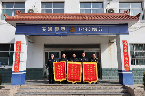 3月13日,原平市同川鎮(zhèn)上社村的郝先生、閆莊村的樊先生l來到原平市公安局交警大隊事故中隊,將印有“火眼金睛明真相 神速追逃暖民心”“神速破案執(zhí)法如山 凜然正氣為民解憂”的錦旗送到民警手中,以表達對交警心系群眾、履職盡責、迅速破案的感激之情。