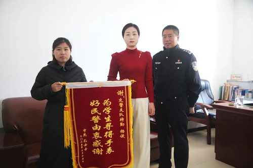 2025年3月15日,忻州市公安局交警支隊特勤大隊楊俊同志在利民三巷和氣象北巷路口附近撿到一塊學(xué)生手表,并積極耐心地想辦法與失主監(jiān)護(hù)人取得了聯(lián)系。因工作原因無法長時間在原地等待,便將手表交由附近公廁的環(huán)衛(wèi)工人妥善保管,最終順利物歸原主。兩日后,失主監(jiān)護(hù)人來到交警支隊,送上一面印有“為學(xué)生尋得手表,好民警由衷感謝”字樣的錦旗以表謝意。