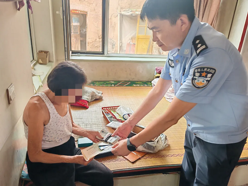 7月27日中午 定襄縣公安局刑偵大隊(duì)一中隊(duì) 接到楊芳村村民報(bào)警 稱其婆婆趙大娘存放在家中的現(xiàn)金、銀行卡等財(cái)物丟失 懷疑被盜 于是第一時(shí)間報(bào)警求助 民警迅速趕到現(xiàn)場展開調(diào)查 經(jīng)勘查發(fā)現(xiàn) 其街門門鎖無損壞 院墻內(nèi)外無攀爬痕跡 屋內(nèi)也沒有明顯翻動跡象 民警初步排除入室盜竊的可能性 民警根據(jù)現(xiàn)場勘查和走訪情況分析 趙大娘今年84歲 不排除年紀(jì)大記憶出現(xiàn)偏差的可能 錢大概率還在家里 “您別著急,我們幫您仔細(xì)找找?!?/p> 民警安撫著老人情緒 在征得老人同意后 民警在屋里展開細(xì)致搜尋 最后終于在房間的小角落 找到了“丟失”的現(xiàn)金、銀行卡和存折 現(xiàn)場清點(diǎn)后,分毫不少 民警把財(cái)物交到老人手中并叮囑 “最好存進(jìn)銀行里安全!”