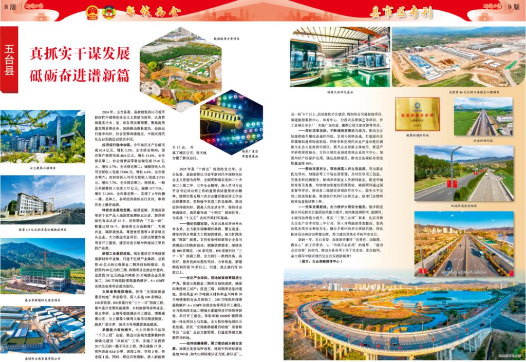 承載能力有效提升。大力開展學(xué)習(xí)運用“千萬工程”經(jīng)驗、推進以縣城為重要載體的城鎮(zhèn)化建設(shè)“雙試點”工作,實施了總投資20.7億元的一攬子民生工程,涉及道路17條、管網(wǎng)改造63.6公里、醫(yī)院2座、學(xué)校3座、養(yǎng)老院1座。同時,順應(yīng)百姓期盼,投入新能源車17臺,開通了城區(qū)公交,極大地方便了群眾出行。2025年是“十四五”規(guī)劃收官之年。五臺縣委、縣政府將以習(xí)近平新時代中國特色社會主義思想為指導(dǎo),全面貫徹落實黨的二十大和二十屆二中、三中全會精神,深入學(xué)習(xí)習(xí)近平總書記對山西工作的重要講話重要指示精神,按照市委五屆八次全會暨市委經(jīng)濟工作會議部署要求,堅持穩(wěn)中求進工作總基調(diào),推動經(jīng)濟持續(xù)向好,提高人民生活水平,保持社會和諧穩(wěn)定,高質(zhì)量完成“十四五”規(guī)劃任務(wù),為實現(xiàn)“十五五”良好開局打牢基礎(chǔ)。