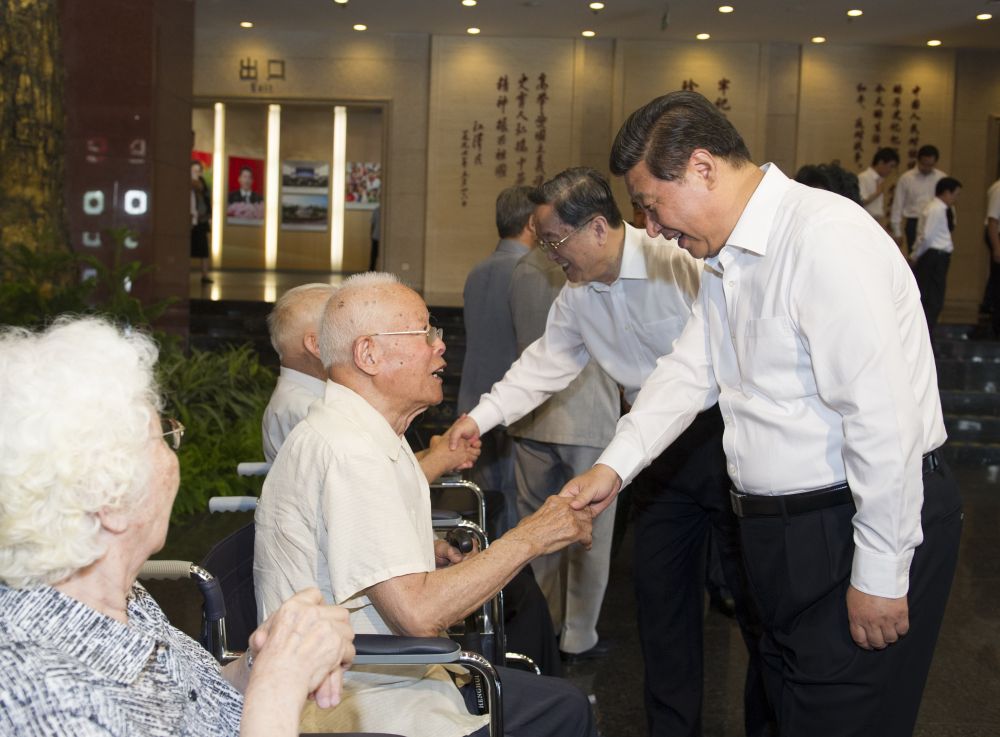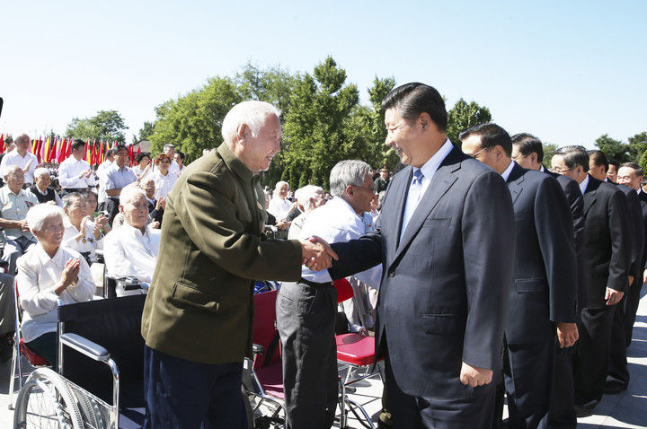 2014年9月3日上午,習近平與抗戰(zhàn)老戰(zhàn)士和老同志、抗戰(zhàn)烈士親屬、為抗戰(zhàn)勝利作出貢獻的國際友人遺屬代表親切會面。